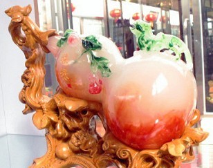 本品造型独特,拥有大小六支葫芦,并配有长长久久根雕,大葫芦表面光滑细腻,做工考究,色如彩云,象征财运。本品适合高档的办公、家居摆设,婚庆礼品,乔迁礼品。 |